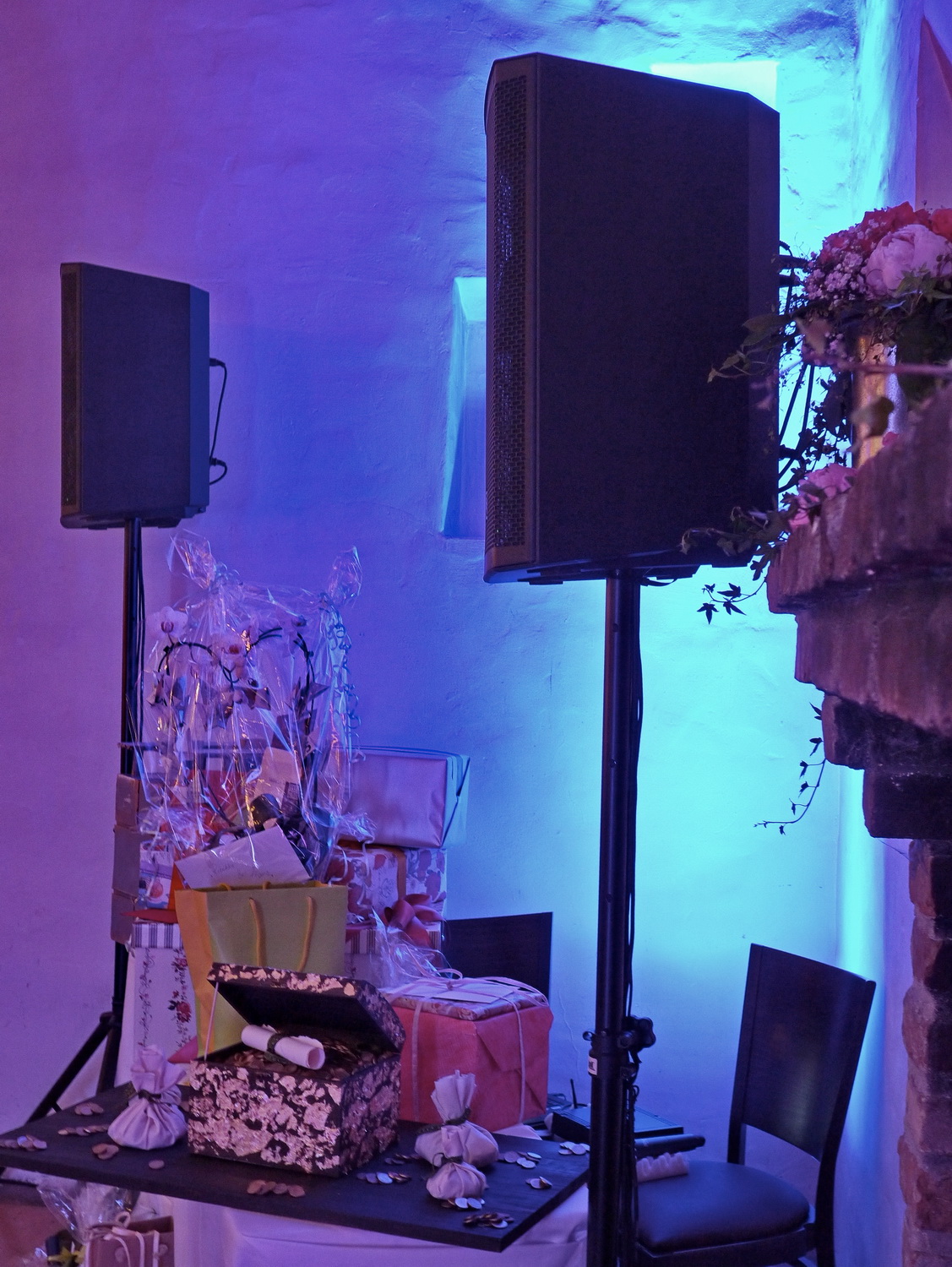 Für Hochzeiten, Geburtstage und Feiern bis ca. 250 Personen habe ich eine eigene Licht- sowie eine hochwertige Ton-Anlage für den Saal und die Tanzfläche.